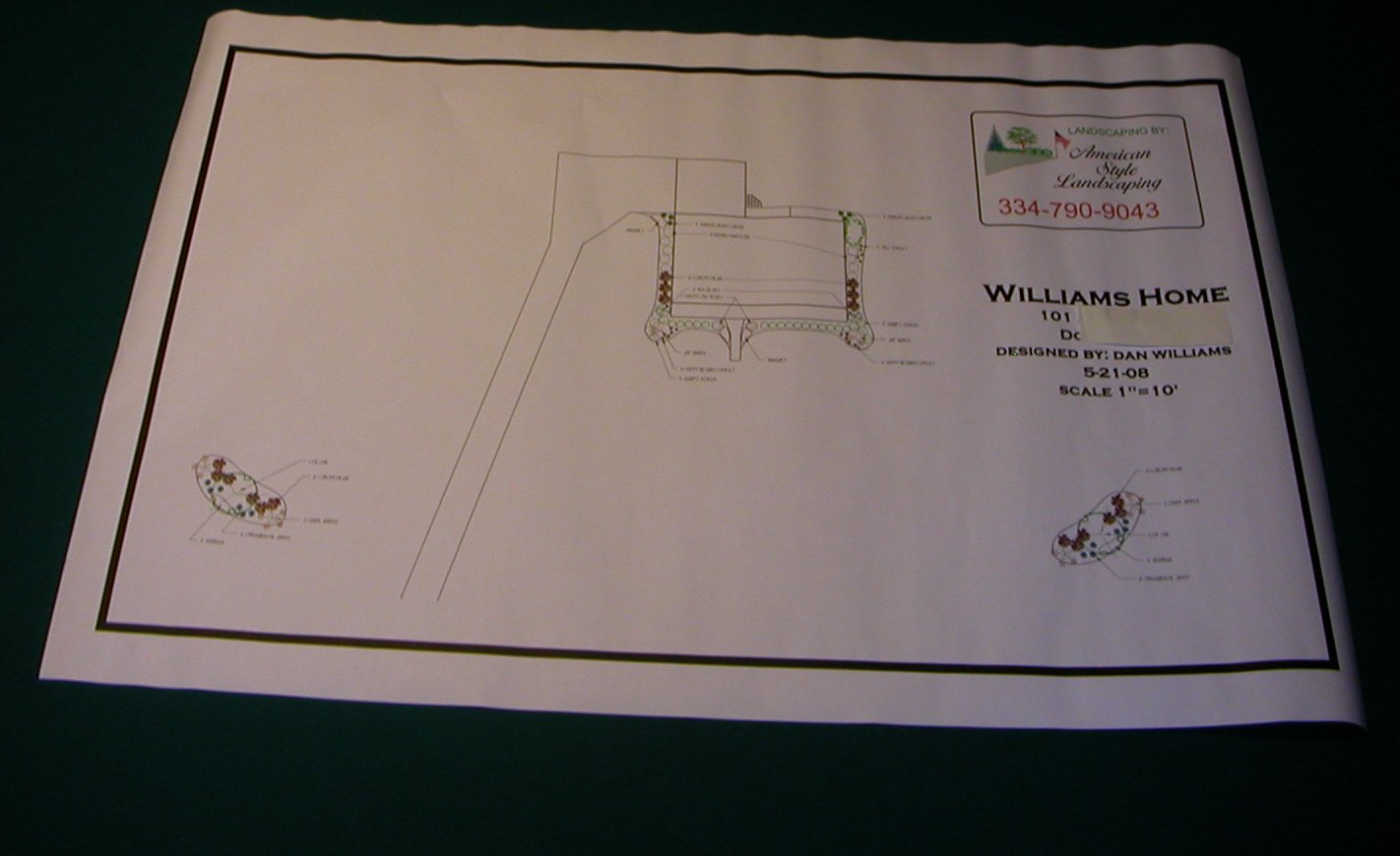 No matter where you live, we can do your design! You will really love the artistic creativity and readability of our landscape plans. They are done to scale through computer software printed on full architectural size paper (24in. X 36in. or larger). Our designers are experts at hardscape and plant placement and arrangement which results in a well balanced, inviting and delectable landscape. CONTACT US FOR DETAILS!